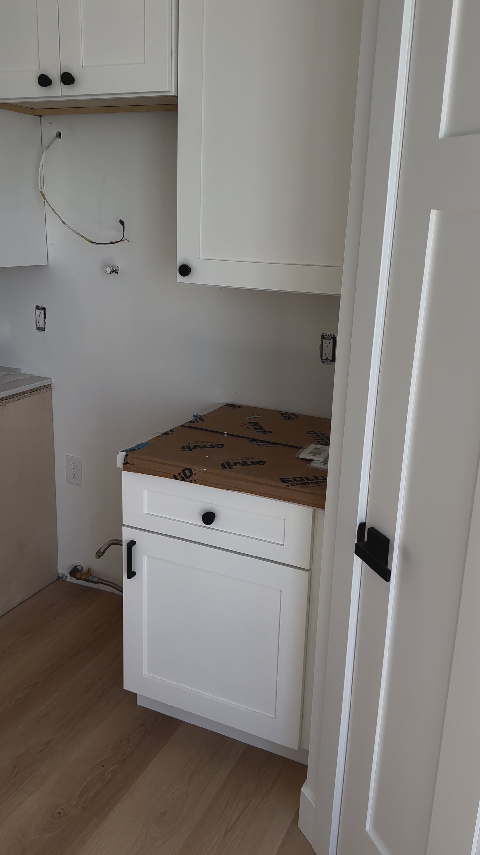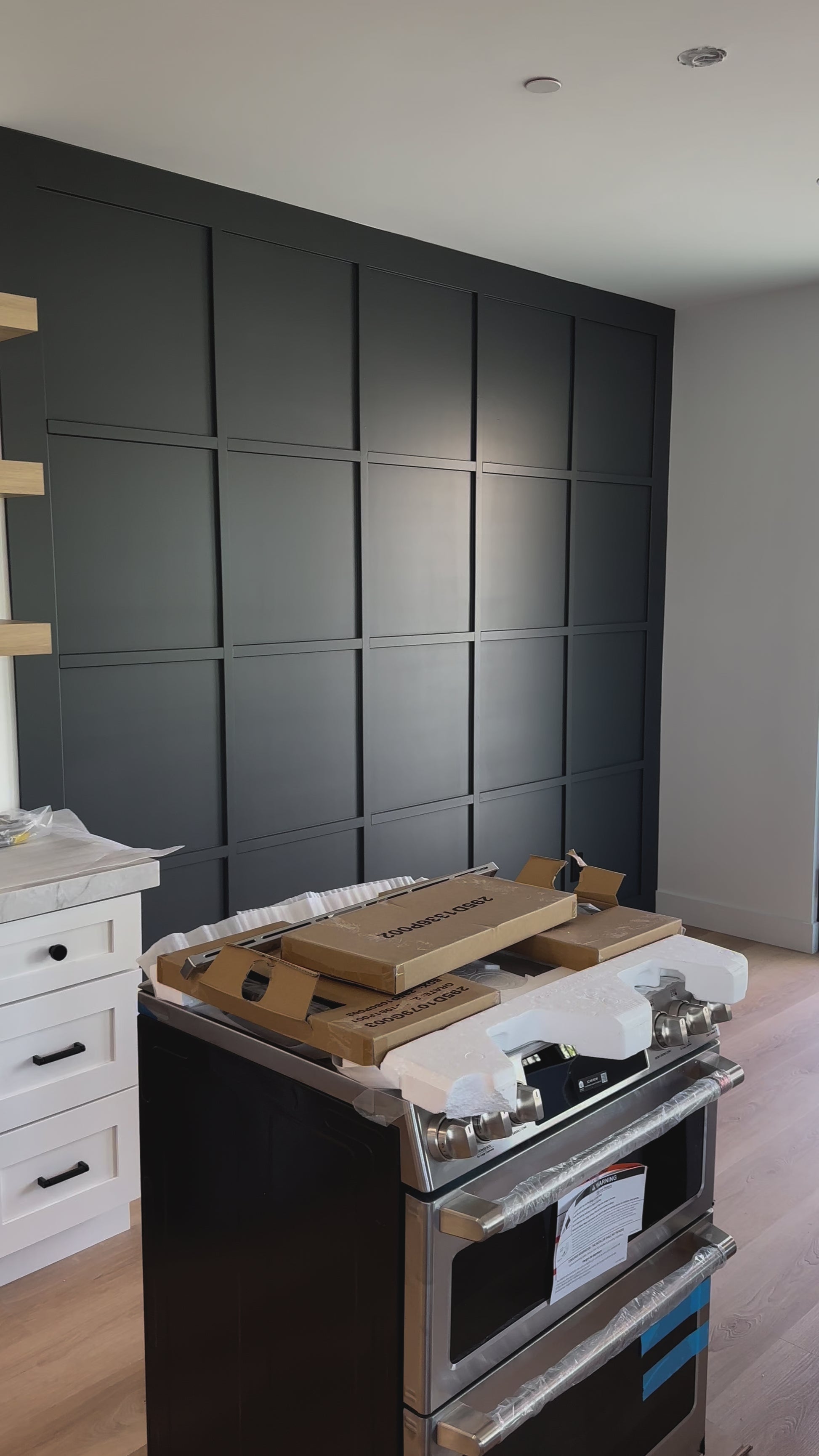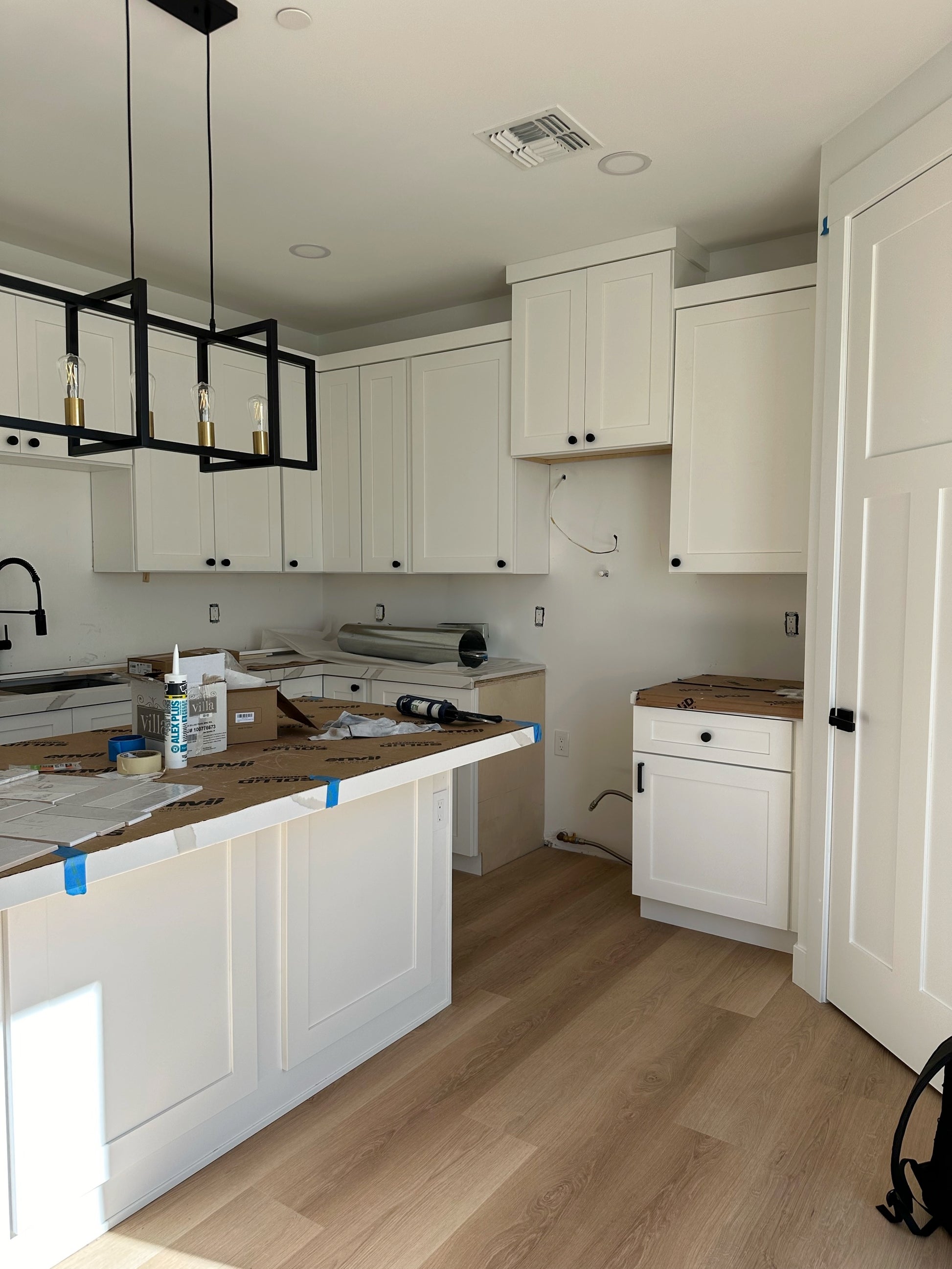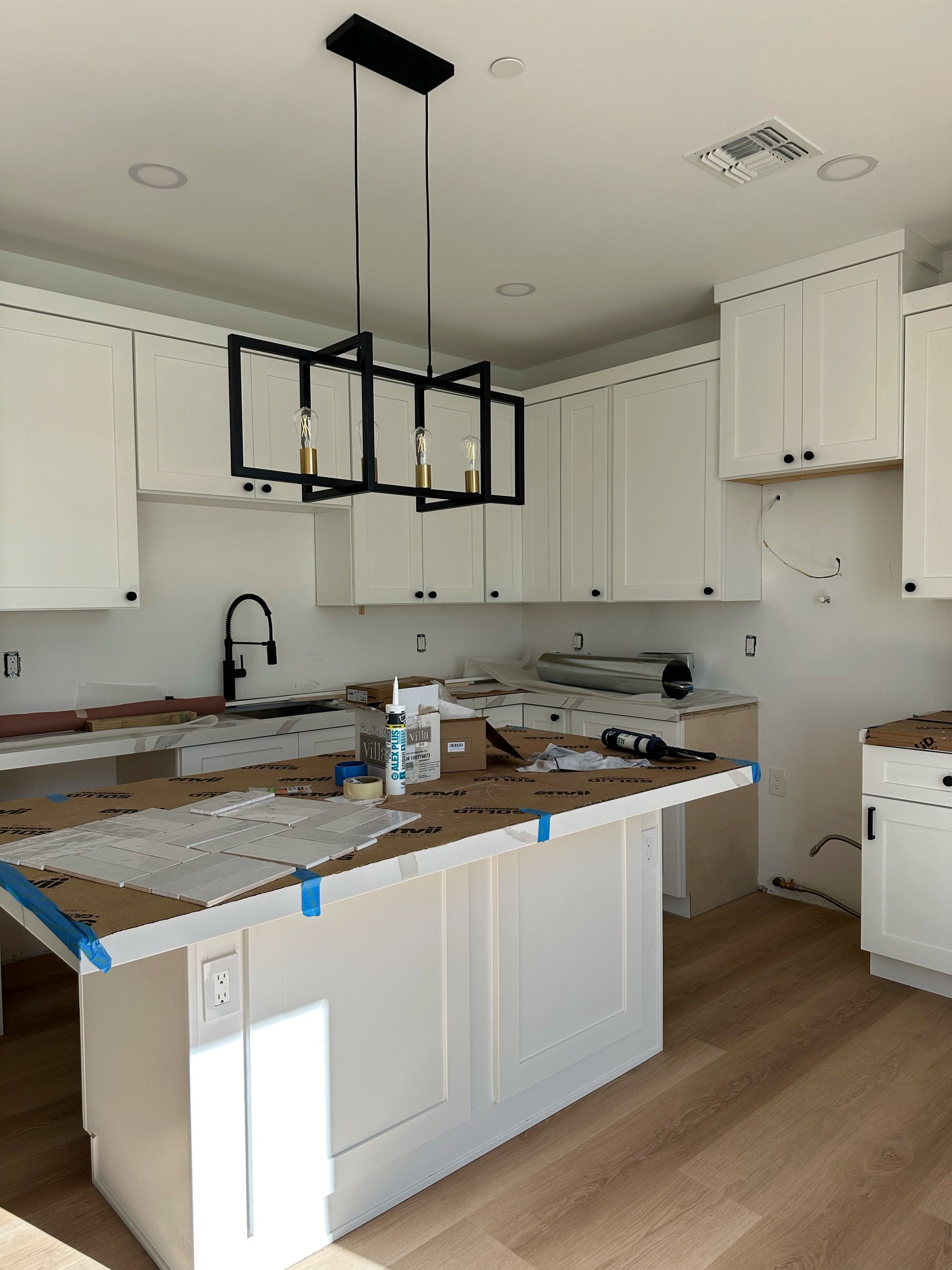 Central Phoenix Project combines minimalist design, white cabinets, and natural wood for a simple and modern kitchen.
